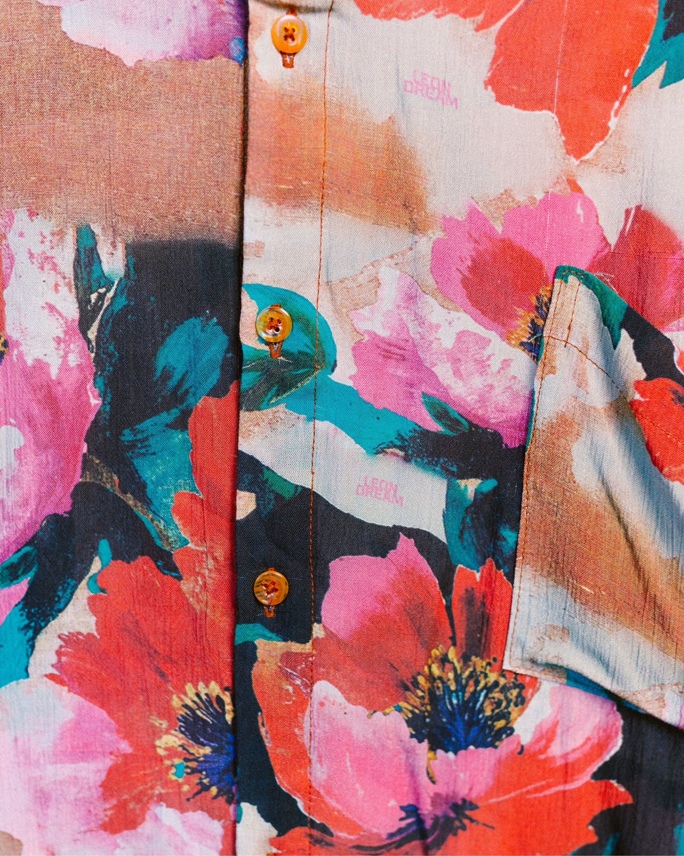 Close-up shot of the Singapore Bloom shirt patterns by Leon Dream