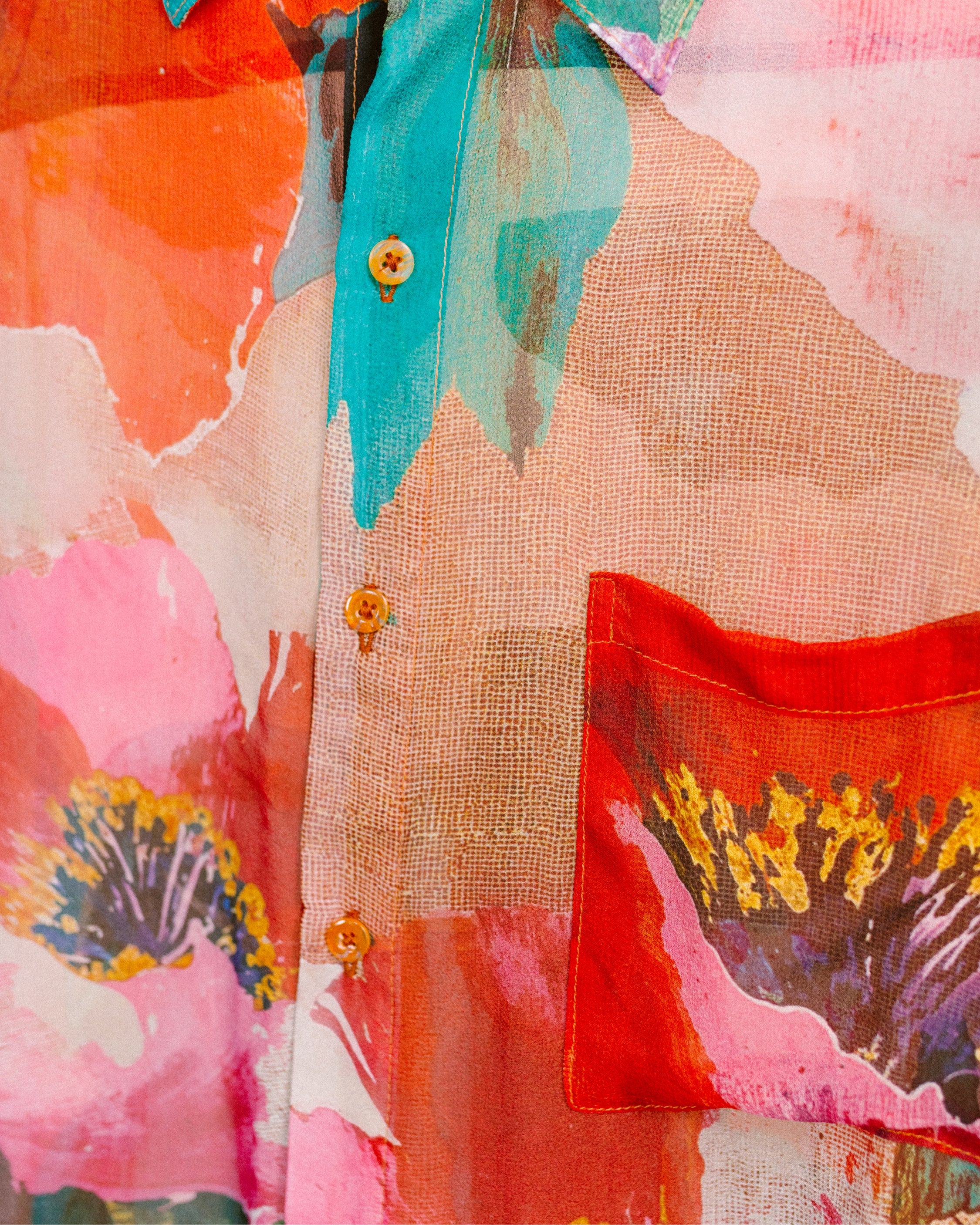 Detailed shot of the Singapore Bloom shirt pattern by Leon Dream